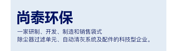 上海尚泰環(huán)保配件有限公司創(chuàng)立于2006年5月,是一家研制、開發(fā)、制造和銷售袋式除塵器過(guò)濾單元、自動(dòng)清灰系統(tǒng)及配件的科技型企業(yè)。